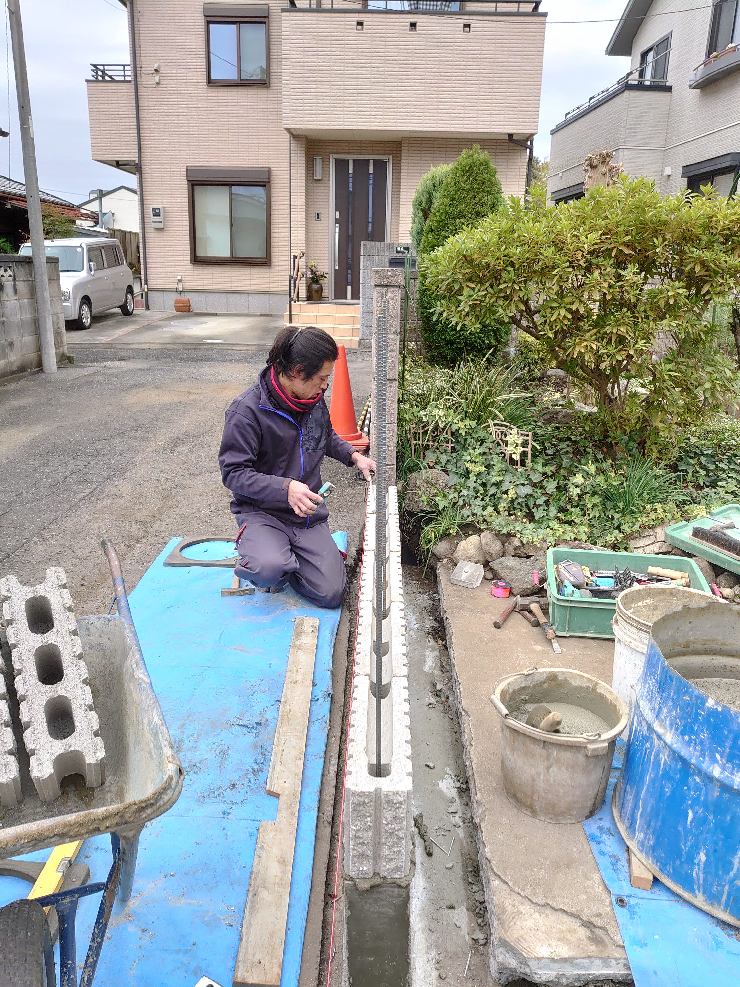 ブロック積み 2019.12.10 飯能市岩沢では、もうひとつ現場が進行中でして、お庭の新規ブロック積みと玄関ポーチの屋根の改修があります。 お正月をきれな形で迎えたいお客様のご依頼は、毎年この時期にいただきます。 年末にスケジュール調整してくれた職人たちにも感謝します。