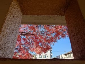 公園のトイレ 2025.12.02 現場近くの公園のトイレで用を足していると、目の前にモミジが見えるようにコンクリートの開口があり、フレームの役目を果たしているのですね。 モミジは終わり頃でしたが、このトイレを設計した方は天才ですね。 用を足しているわずかな時間ですが、景色を楽しむことが出来るなんて。 こう言う遊び心は勉強になりますね。